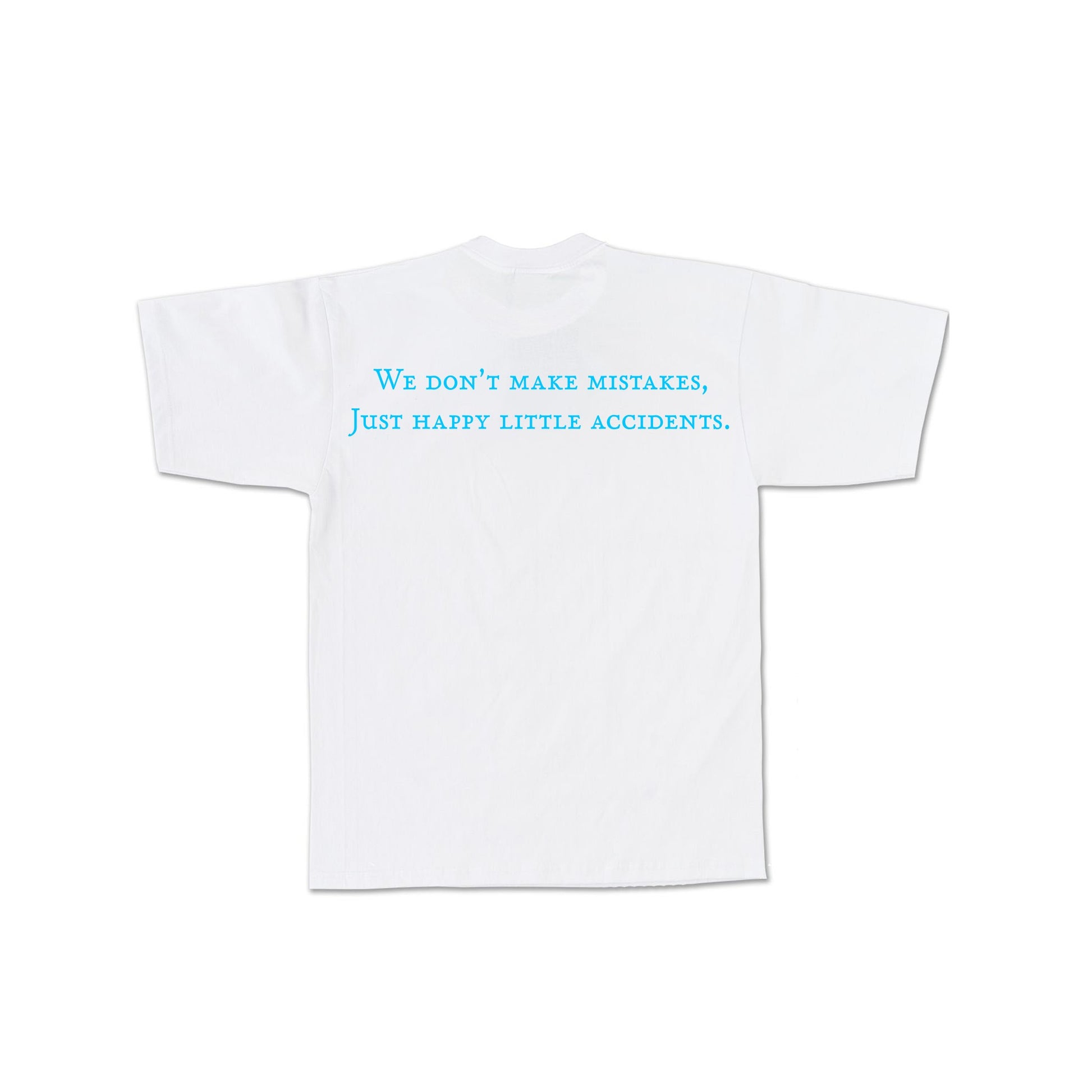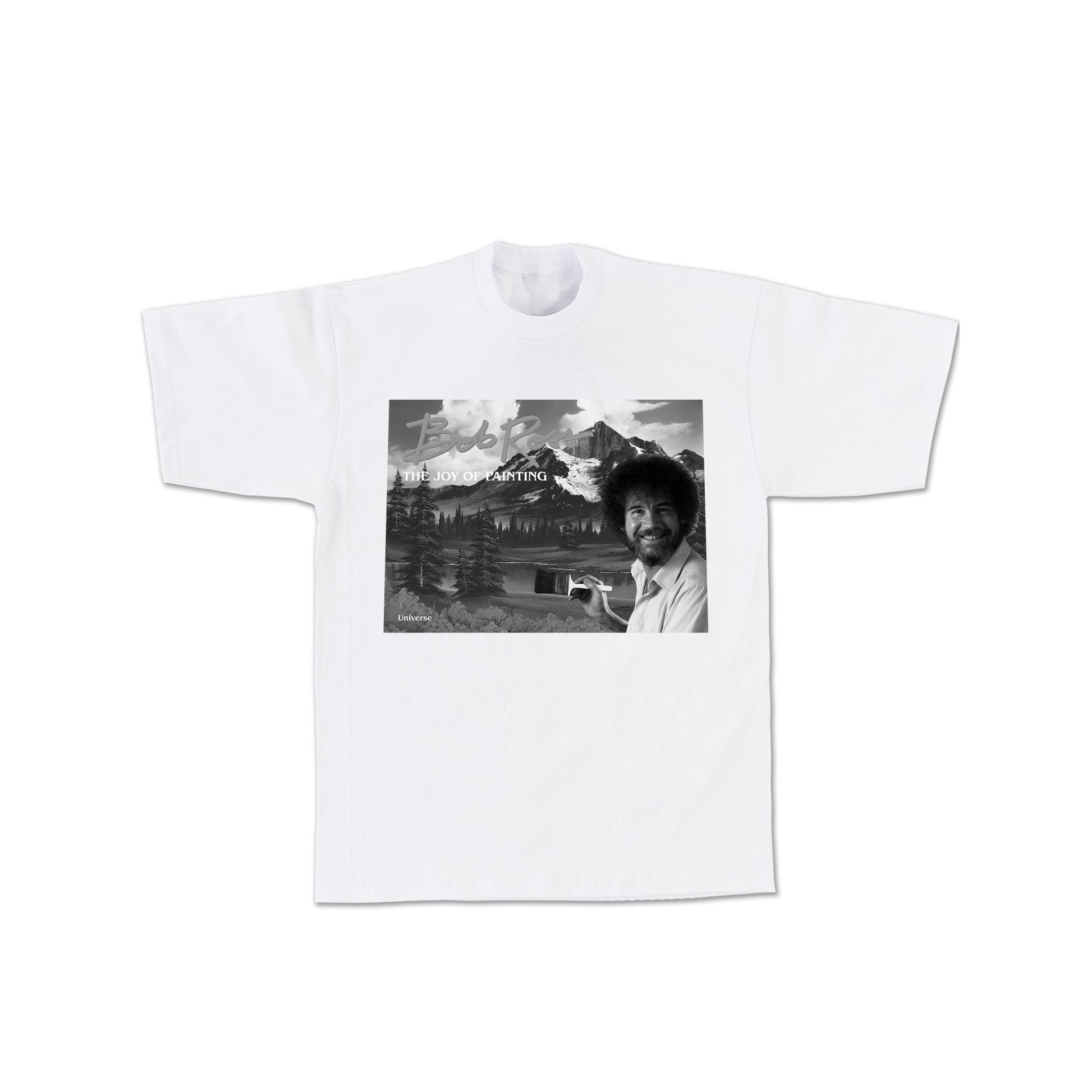 Made with 100% cotton, this white tee features a Bob Ross print in front.